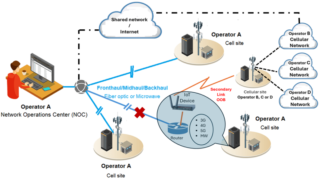 Without a doubt, out-of-band (OOB) management (secondary access path) of a down cellular site and therefore inaccessible via the primary path, generally offers five (5) key advantages: